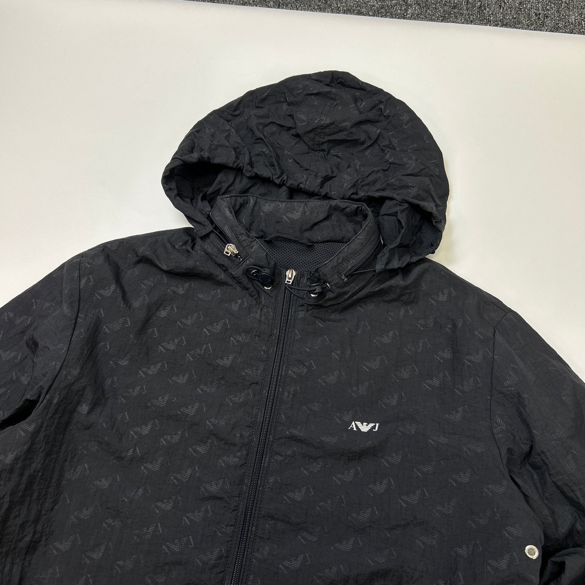 00s hooded AJ monogram lightweight zip up nylon jacket