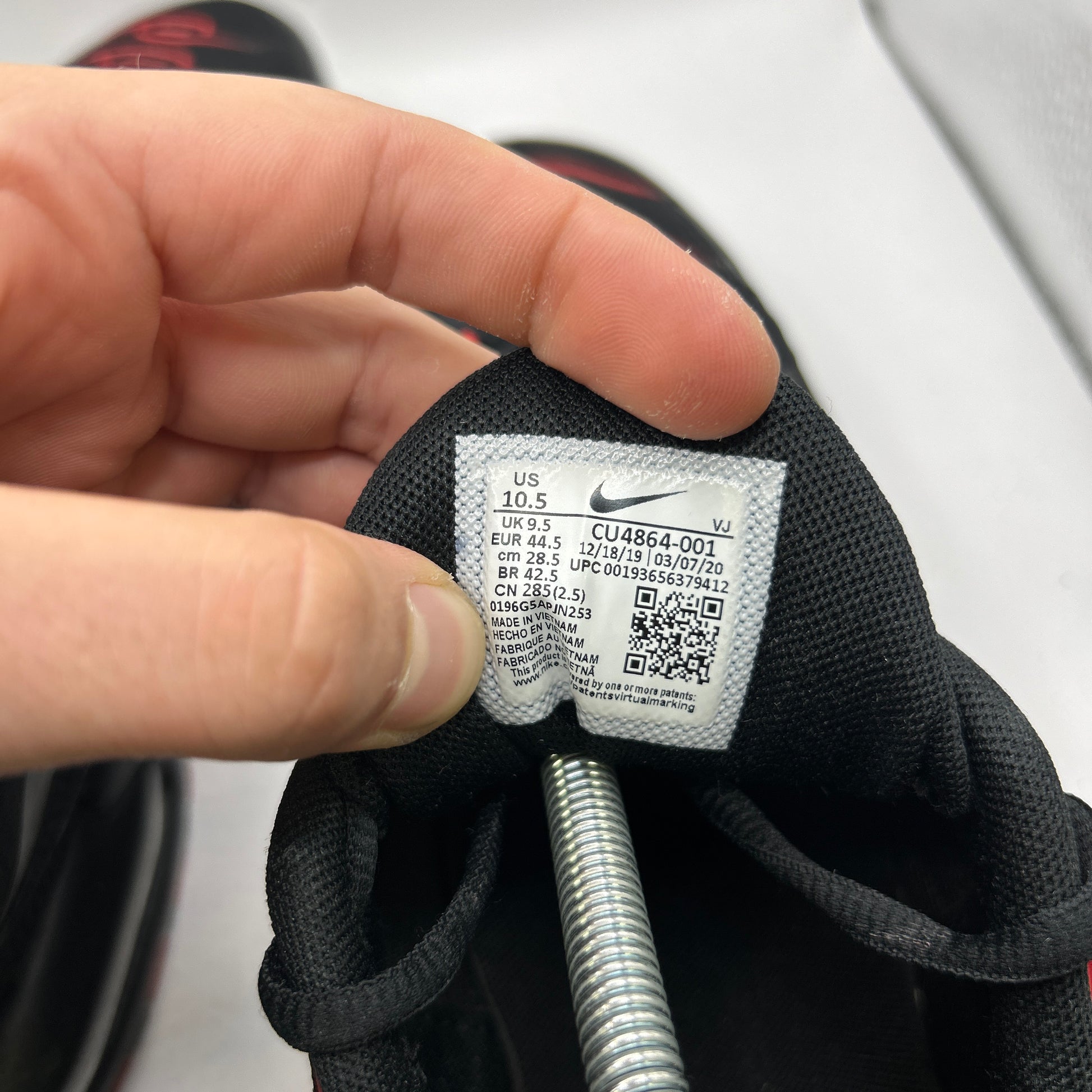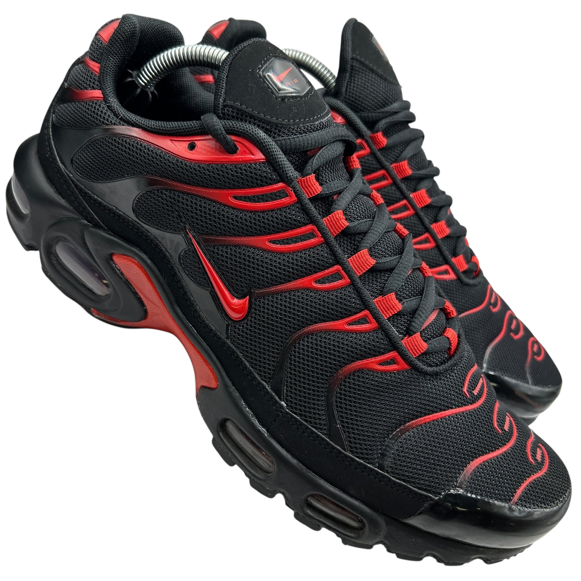 Nike black and red air max plus