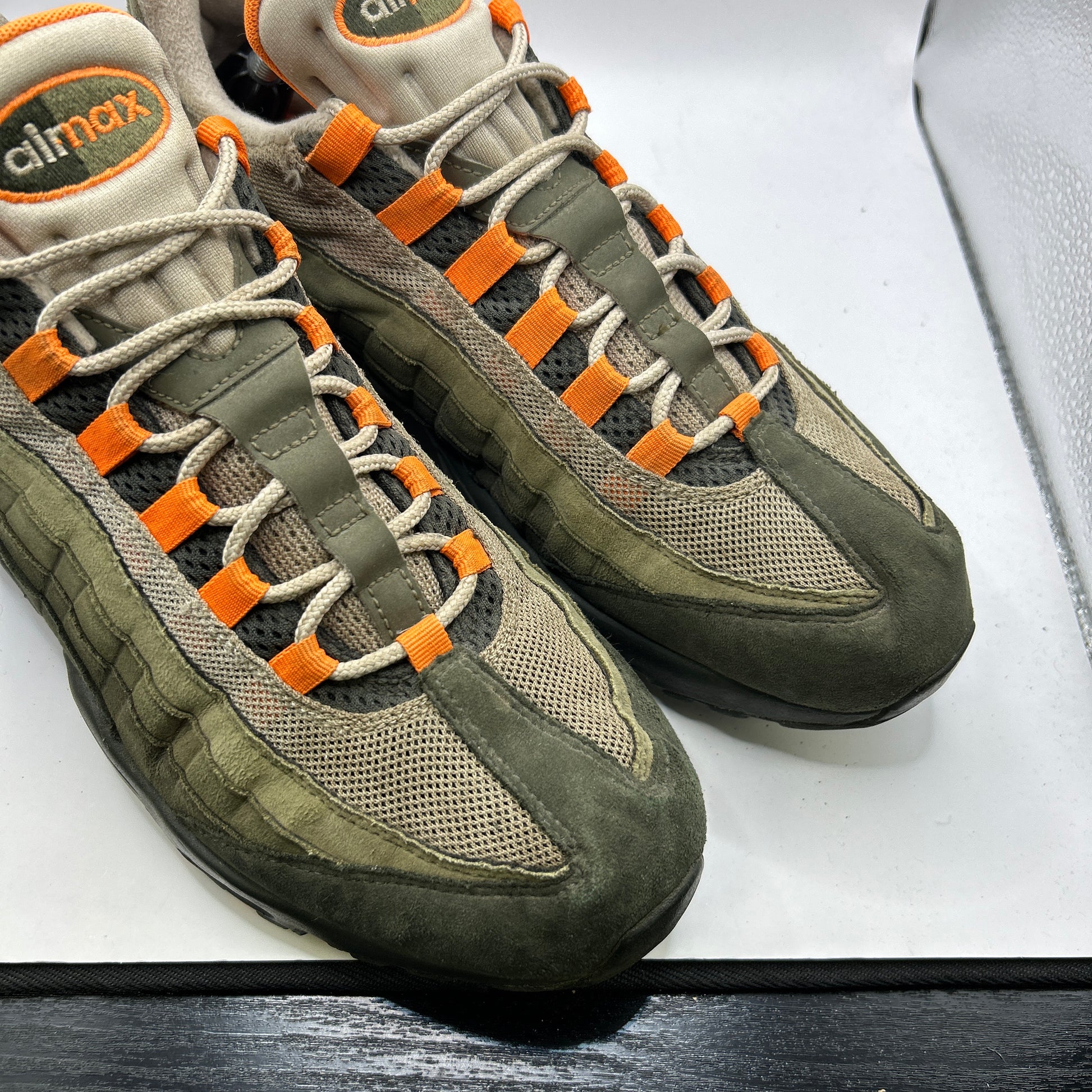 Khaki and orange air max 95s